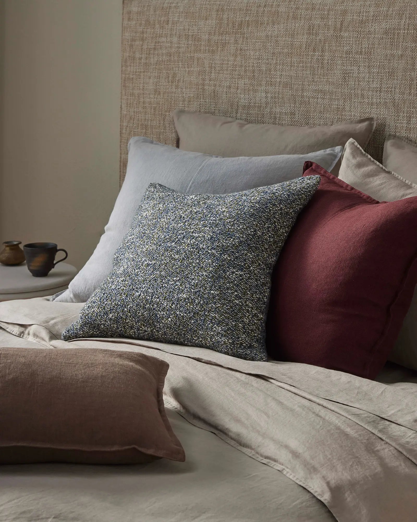 Defined by its looped weave and tactile finish, bouclé adds a refined layer of texture to contemporary spaces. This collection of cushions and homewares is designed for effortless layering, pairing seamlessly with linen, wool and natural fibres. Soft yet structured, bouclé creates visual interest while maintaining a calm, elevated aesthetic suited to modern living.