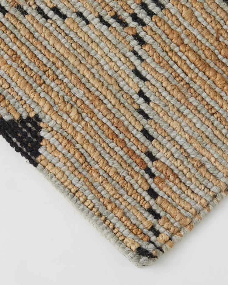 Made of 50% Wool and 50% Jute, Denali is super thick underfoot and combines the robustness of multi-ply, twisted jute yarn with the softness of wool, in an alternating loop pile stripe.