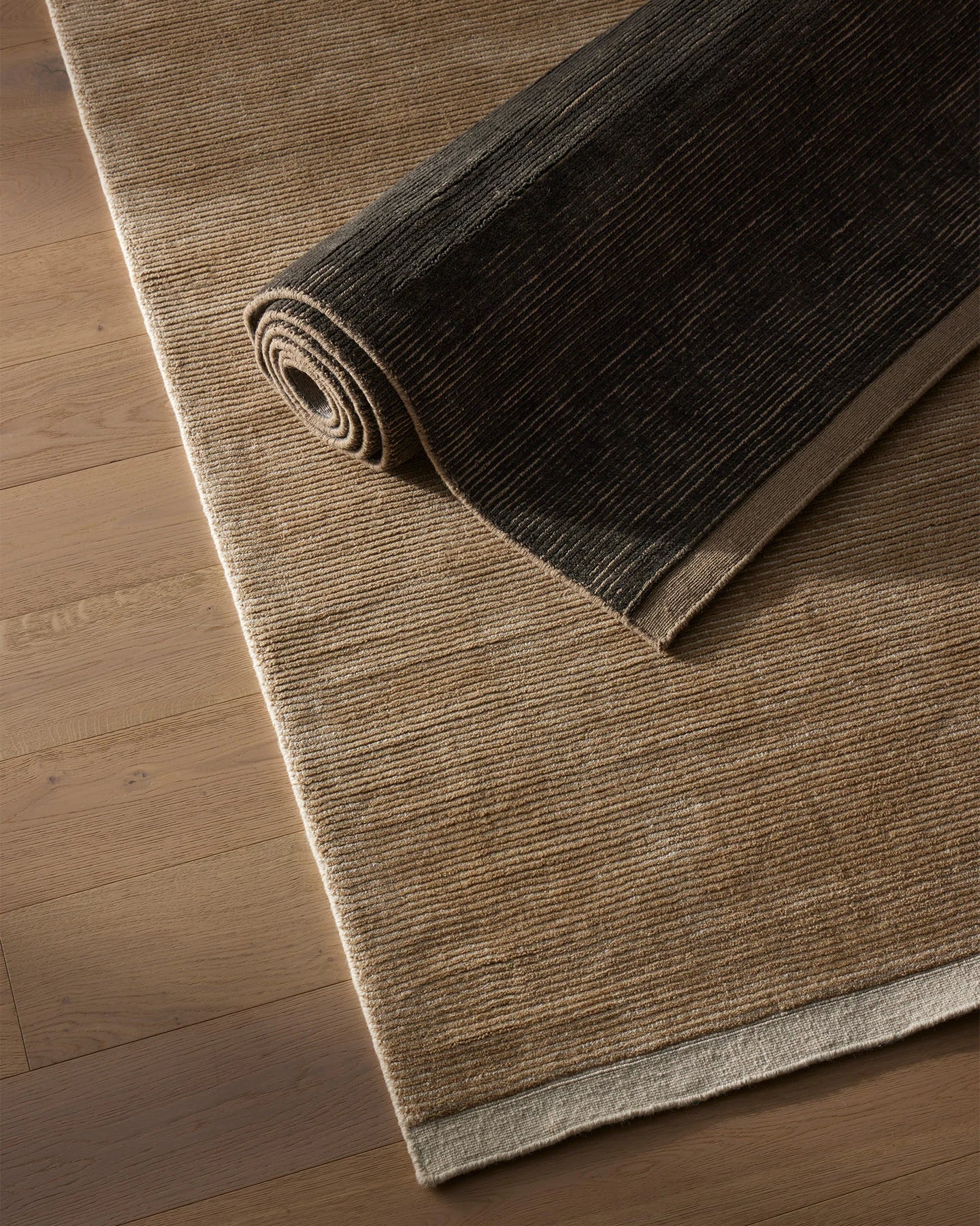 A softly nuanced two-tone weave finished with blanket stitch detailing.